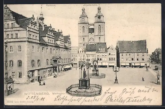 AK Wittenberg / Elbe, Marktplatz mit Rathaus und Stadtkirche
