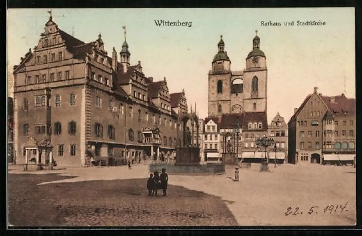 AK Wittenberg / Elbe, Rathaus und Stadtkirche