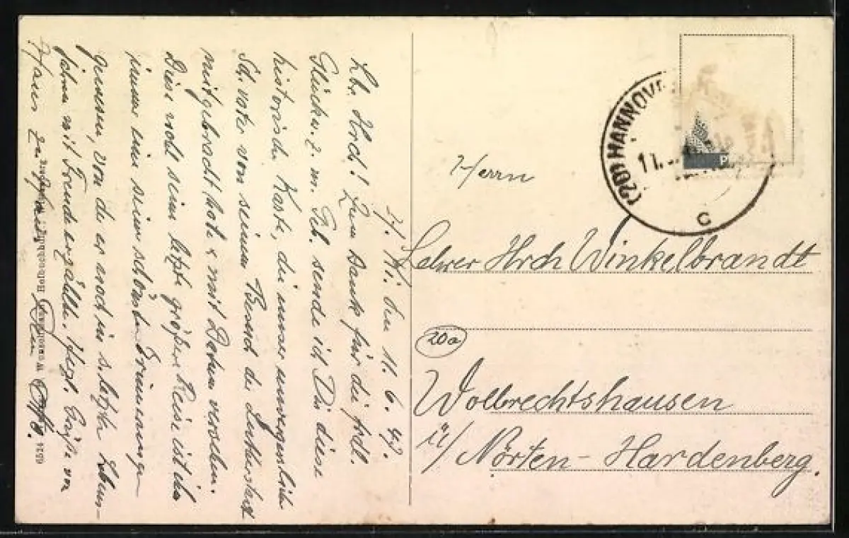 alte Ansichtskarte, gelaufen, Briefmarke entfernt, guter Zustand
