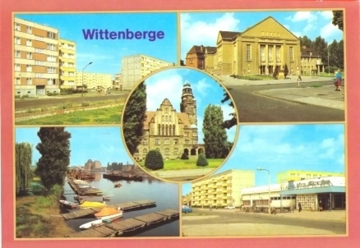 Ansichtskarte Wittenberge 5 Abb., Perleberger Straße, Kulturhaus, Hafen, HO-Kaufhalle, Rathaus Erhaltung I-II ungelaufen Druckvermerk: 1987 Herstellungsland: DDR Verlag: Bild und Heimat Reichenbach - 01 02 0089/08