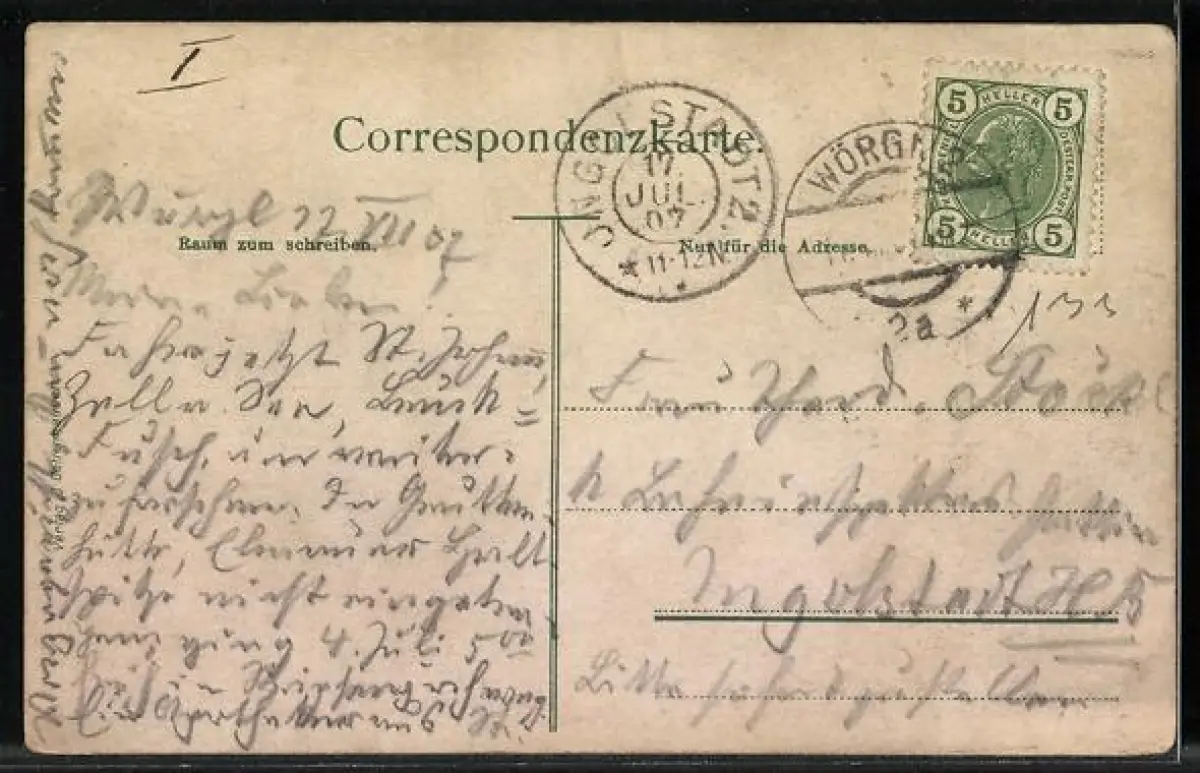 alte Ansichtskarte, gelaufen 1907, guter Zustand