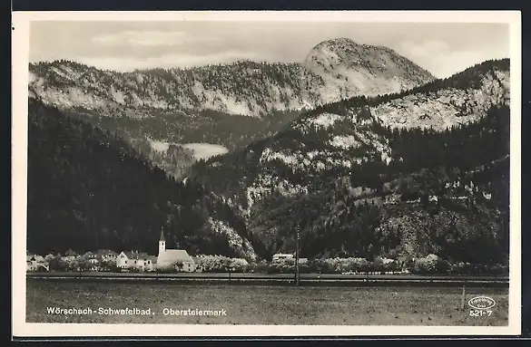 AK Wörschach-Schwefelbad /Obersteiermark, Ortsansicht vor Bergpanorama