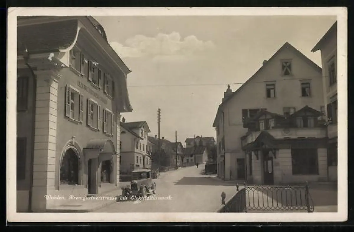 AK Wohlen /AG, Bremgartnerstrasse mit Elektrizitätswerk
