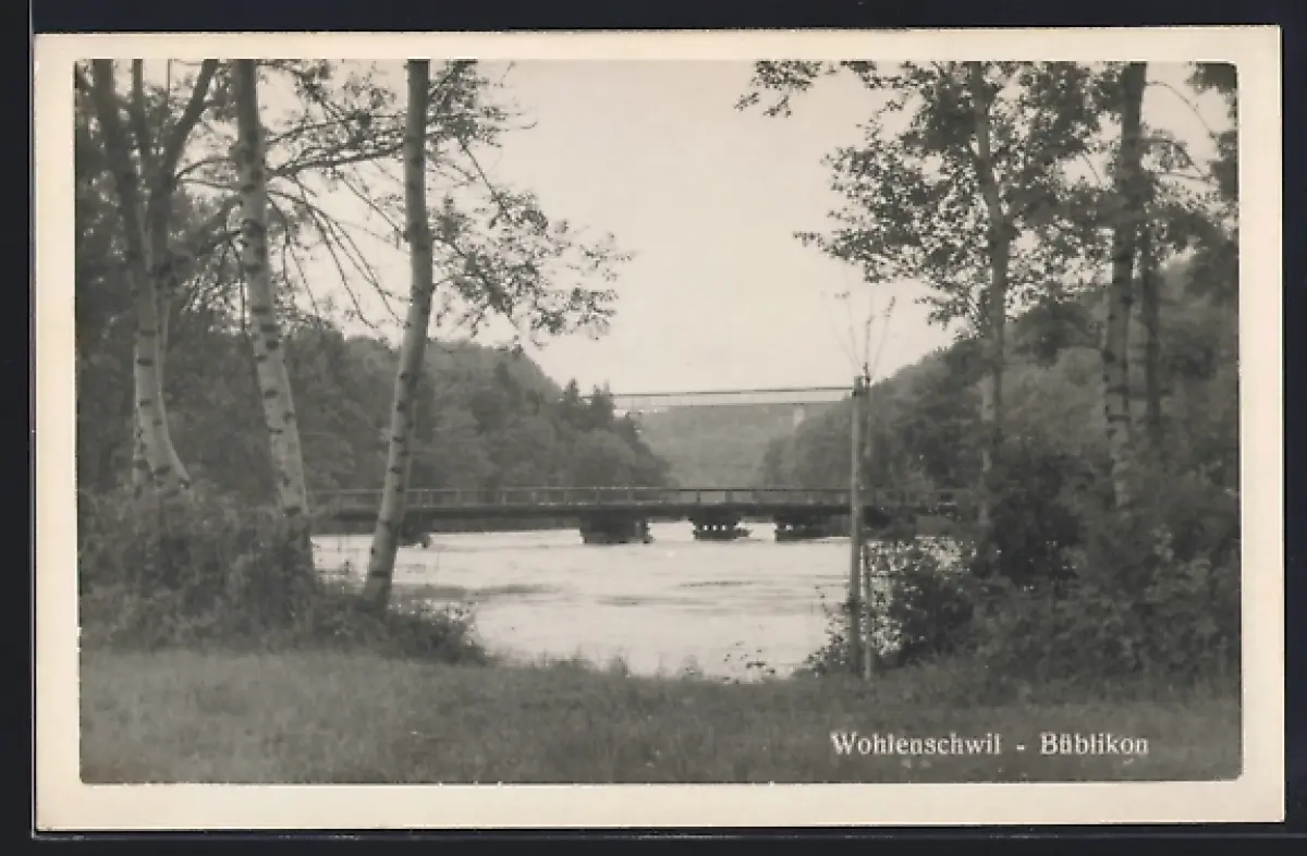 AK Wohlenschwil-Bübikon, Uferpartie mit Brücke