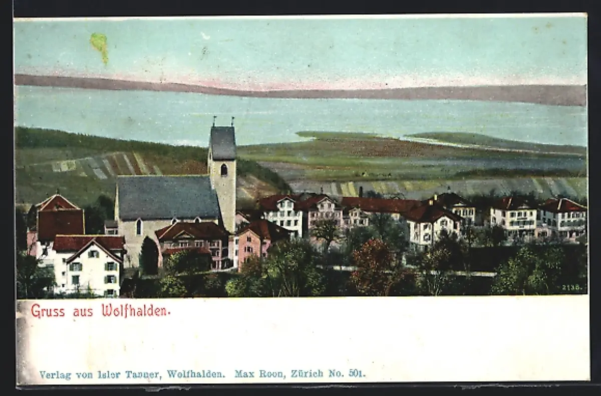 AK Wolfhalden, Totalansicht mit Seeblick aus der Vogelschau