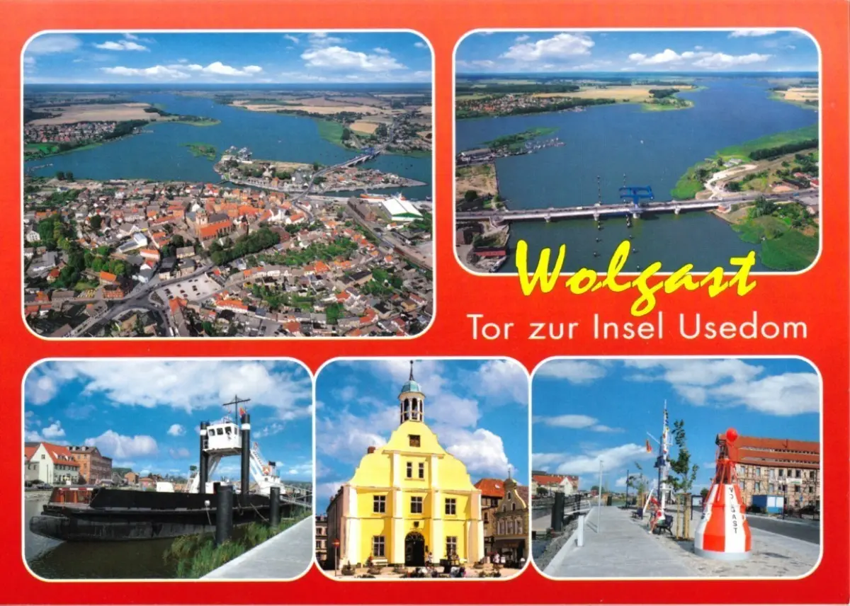 Ansichtskarte Wolgast Tor zur Insel Usedom fünf Abb. Erhaltung I ungelaufen.um 2000 Verlag: Schöning & Co + Gebrüder Schmidt, Lübeck