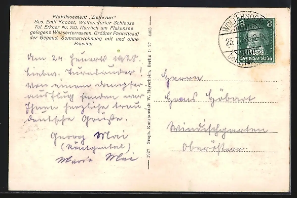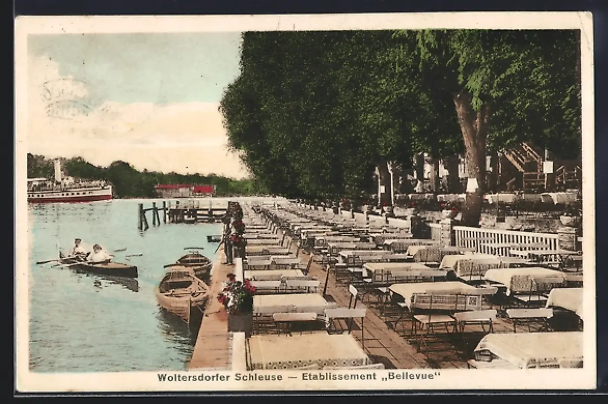 AK Woltersdorf / Mark, Restaurant Bellevue Terrasse an der Schleuse, Bes. Emil Knoost