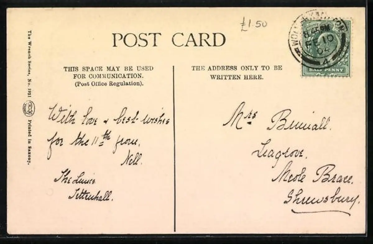 alte Ansichtskarte, gelaufen 1904, guter Zustand