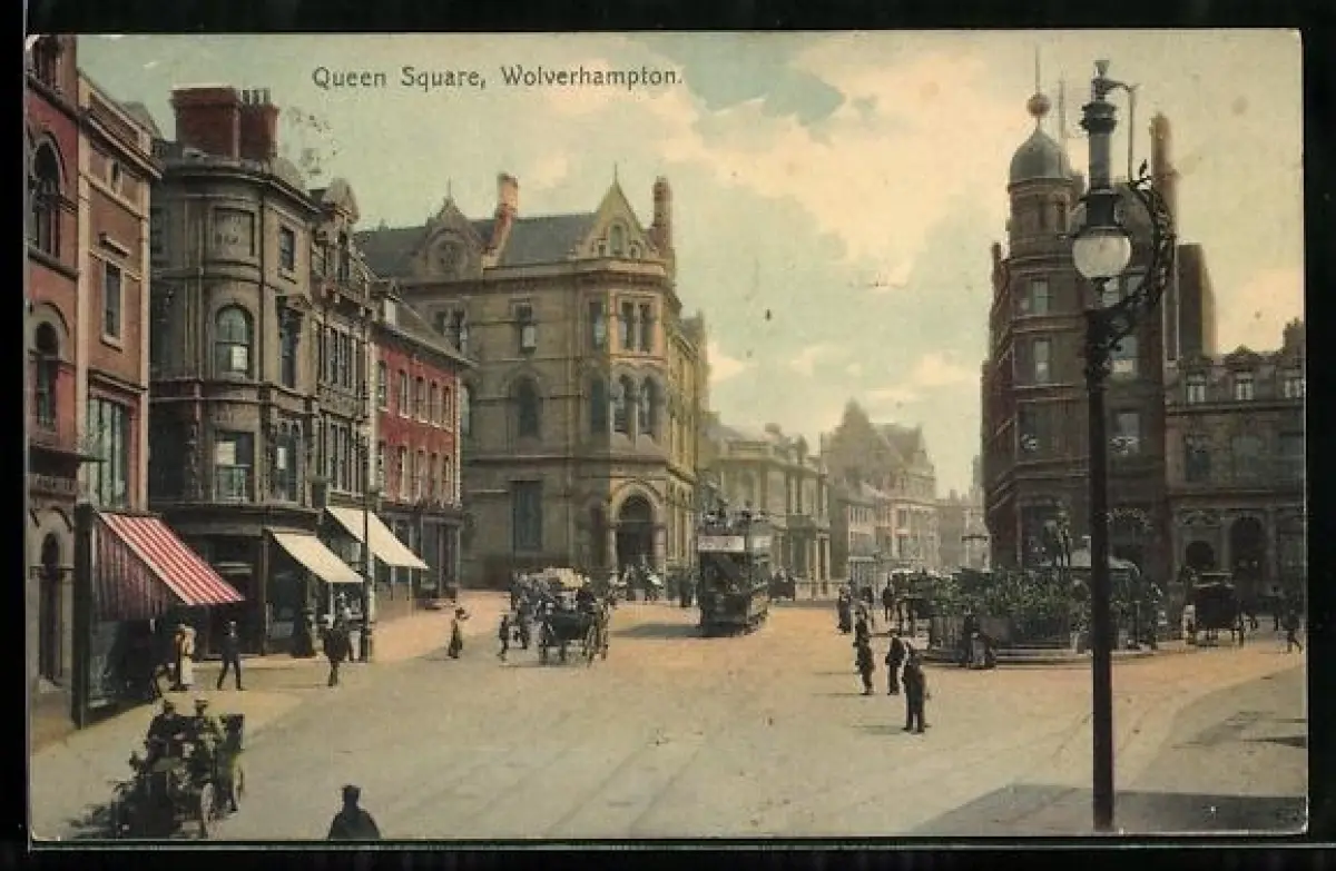 AK Wolverhampton, Queen Square with tram