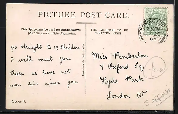 alte Ansichtskarte, gelaufen 1905, Stempelspur, Bugspur li. oben, guter Zustand