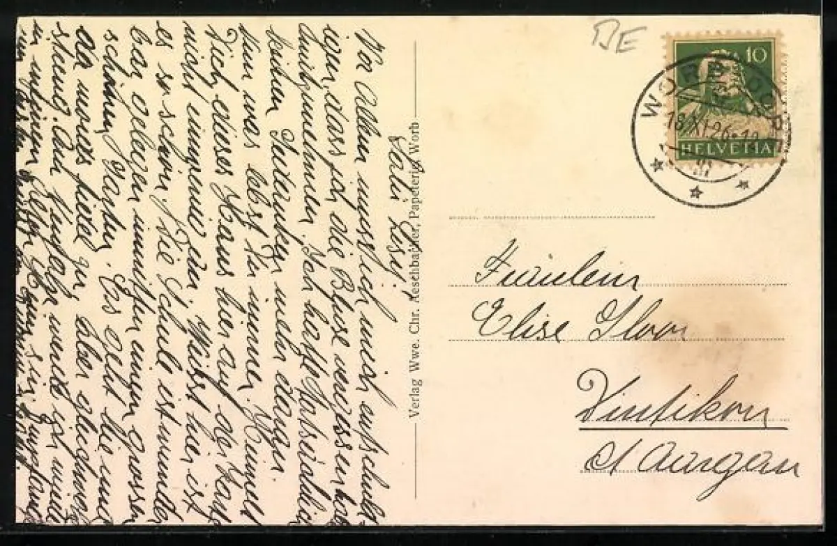 gelaufen 1926, Eckknick li. unten, Abriebspur li. unten, guter Zustand