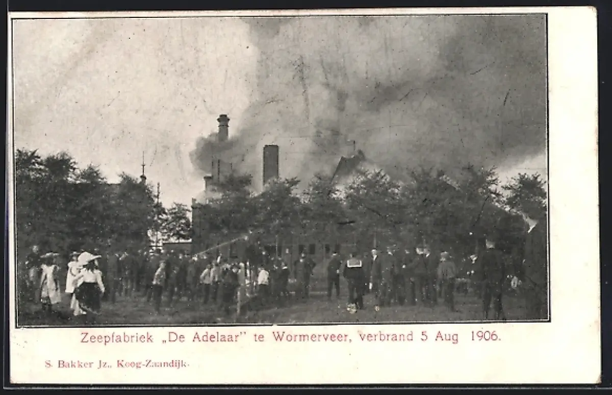 AK Wormerveer, Zeepfabriek De Adelaar, verbrand 5 Aug 1906