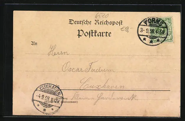 alte Ansichtskarte, gelaufen 1898, guter Zustand