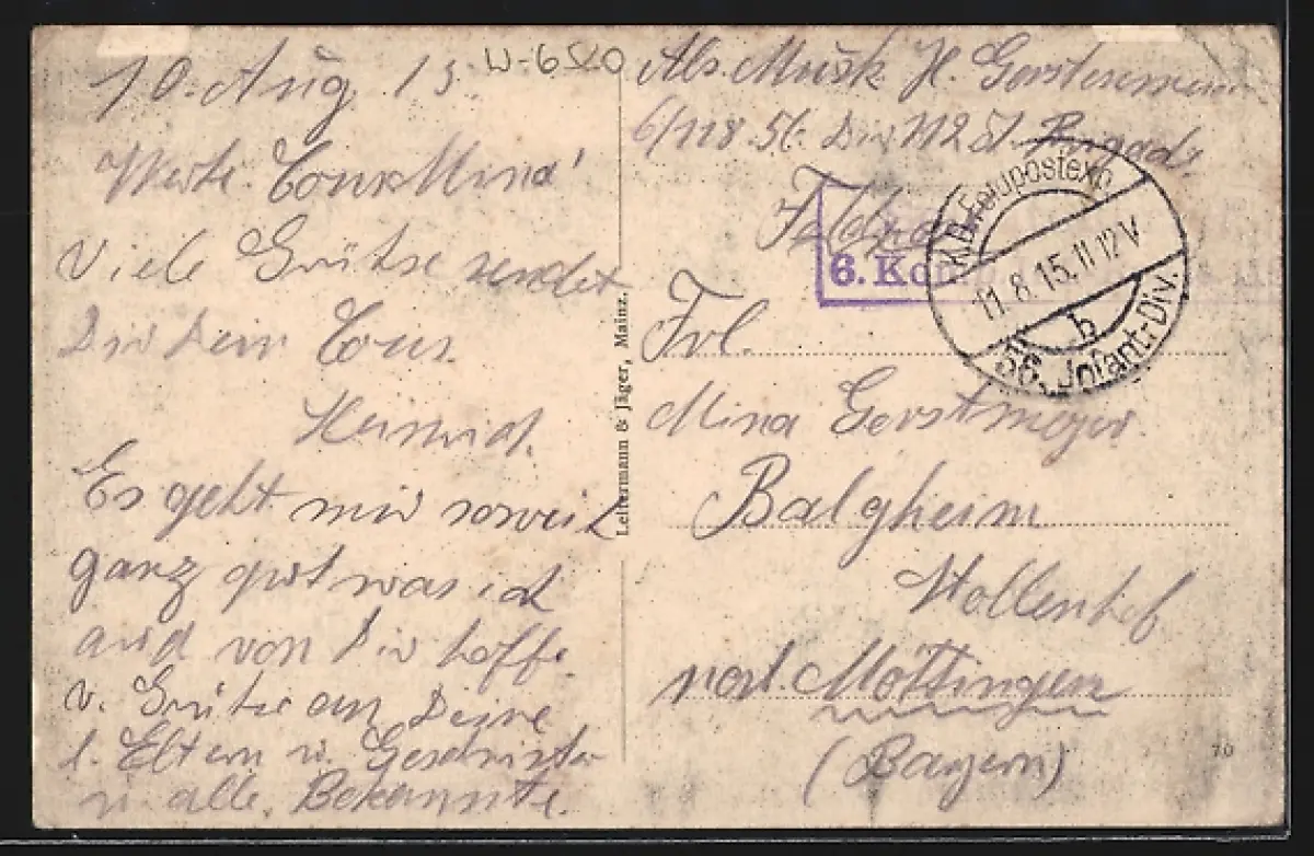alte Ansichtskarte, gelaufen 1915, Eckknick li. oben, guter Zustand