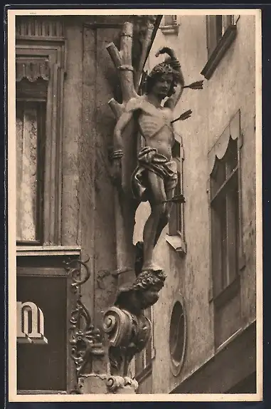 AK Würzburg, Hl. Sebastian-Häuserschmuck in der Blasiusgasse 1