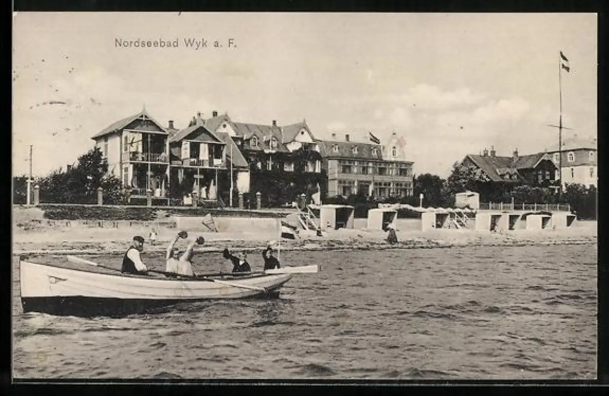 AK Wyk a. F., Strandpartie mit Strandkörben und Ruderboot