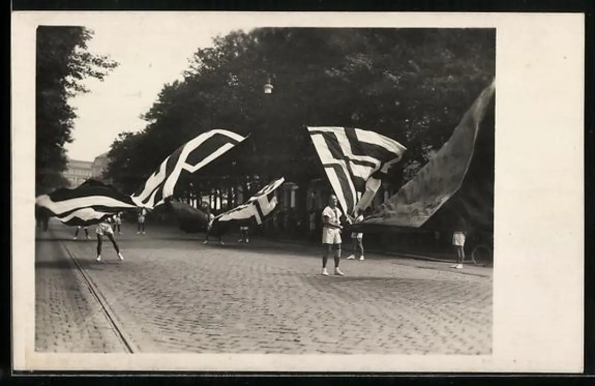 AK X. Deutsches Bundes Sängerfest, Festzug Fahnenschwinger