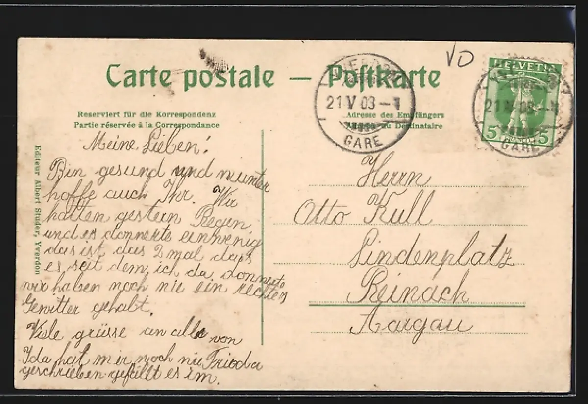 gelaufen 1903, Eckknick oben li., guter Zustand