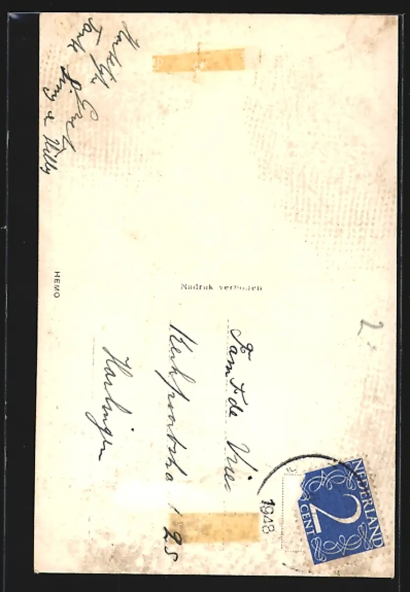 alte Ansichtskarte, gelaufen 1948, rückseitig Klebe- und Papierreste, rückseitig Oberflächenschaden, guter Zustand