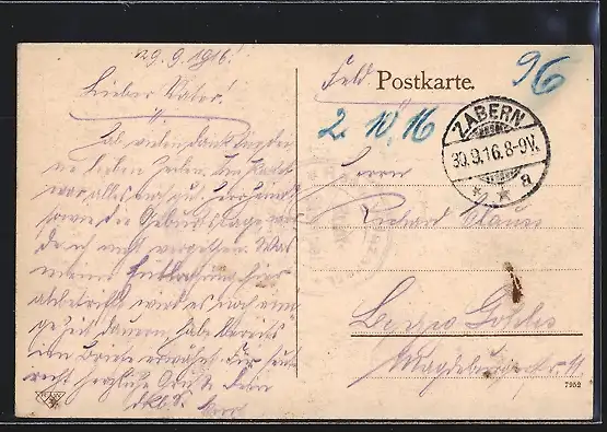 alte Ansichtskarte, gelaufen 1916, rückseitig Klebe- und Papierreste, guter Zustand