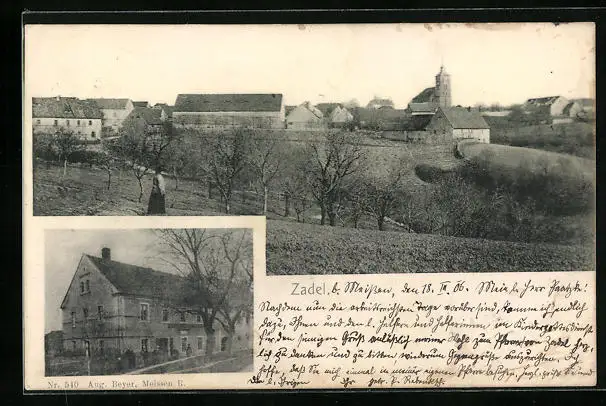 AK Zadel, Ansicht vom Gasthaus, Teilansicht mit Kirche