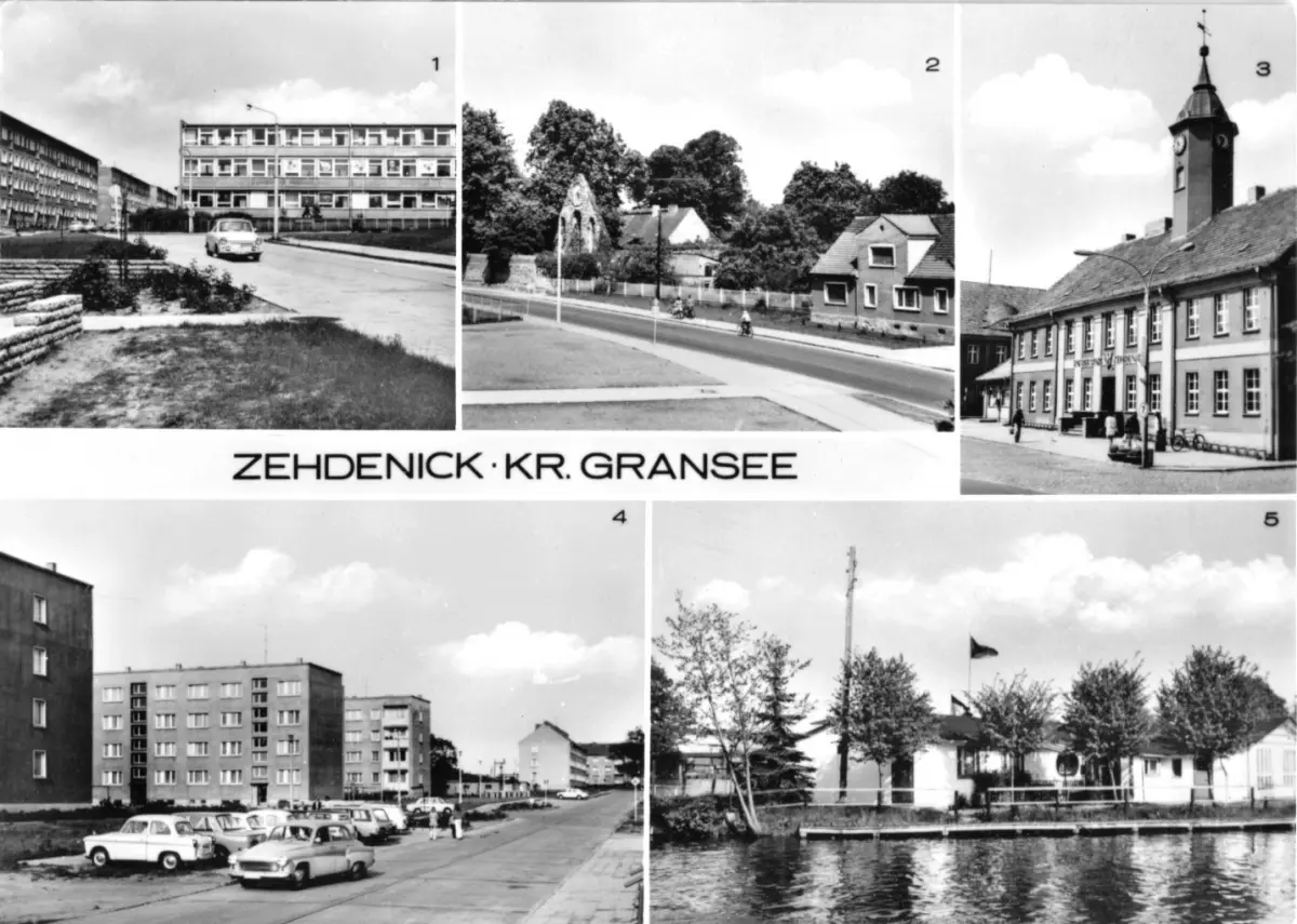 Ansichtskarte Zehdenick Kr. Gransee fünf Abb. - Karl-Marx-Oberschule, Klosterruine, Rathaus, Str. des Friedens, Gaststätte "Bootshaus" Erhaltung I-II ungelaufen Druckvermerk: 1979 Herstellungsland: DDR Verlag: Bild und Heimat, Reichenbach i. V. - 01 04 03 330
