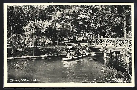 AK Zeillern /N.-Ö., Brückenpartie mit Boot