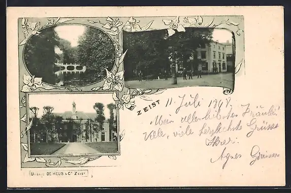 AK Zeist, Rathaus, Brücke, Strassenpartie