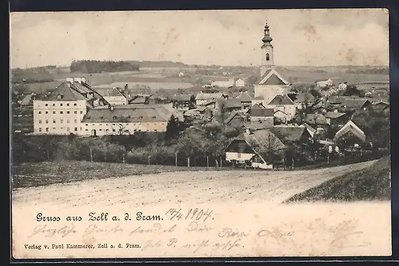 AK Zell a. d. Pram, Ortspartie mit Kirche