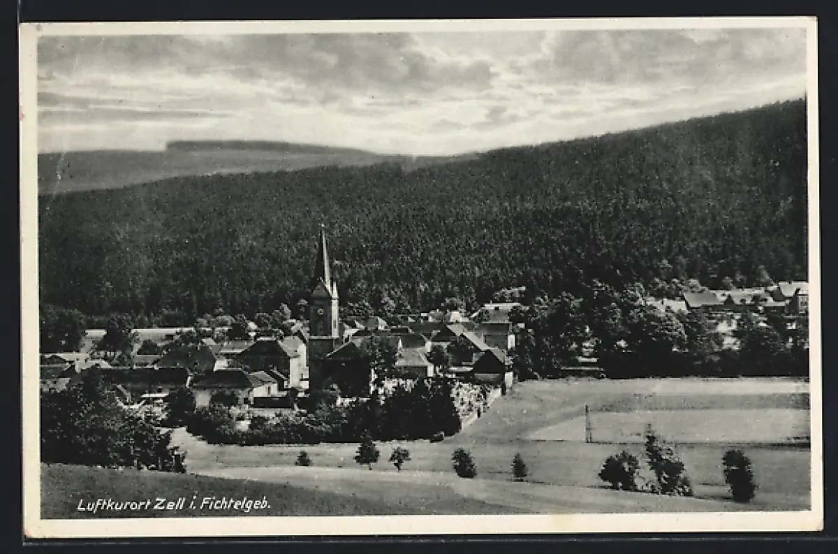 AK Zell i. Fichtelgeb., Ortsansicht mit Kirche aus der Vogelschau