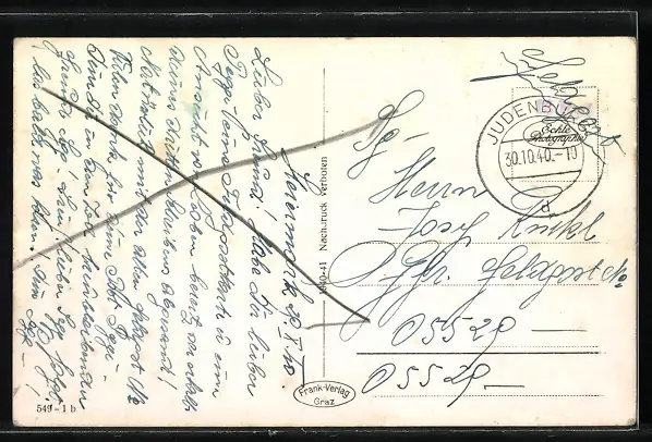 alte Ansichtskarte, gelaufen 1940, Bugspur links oben, guter Zustand
