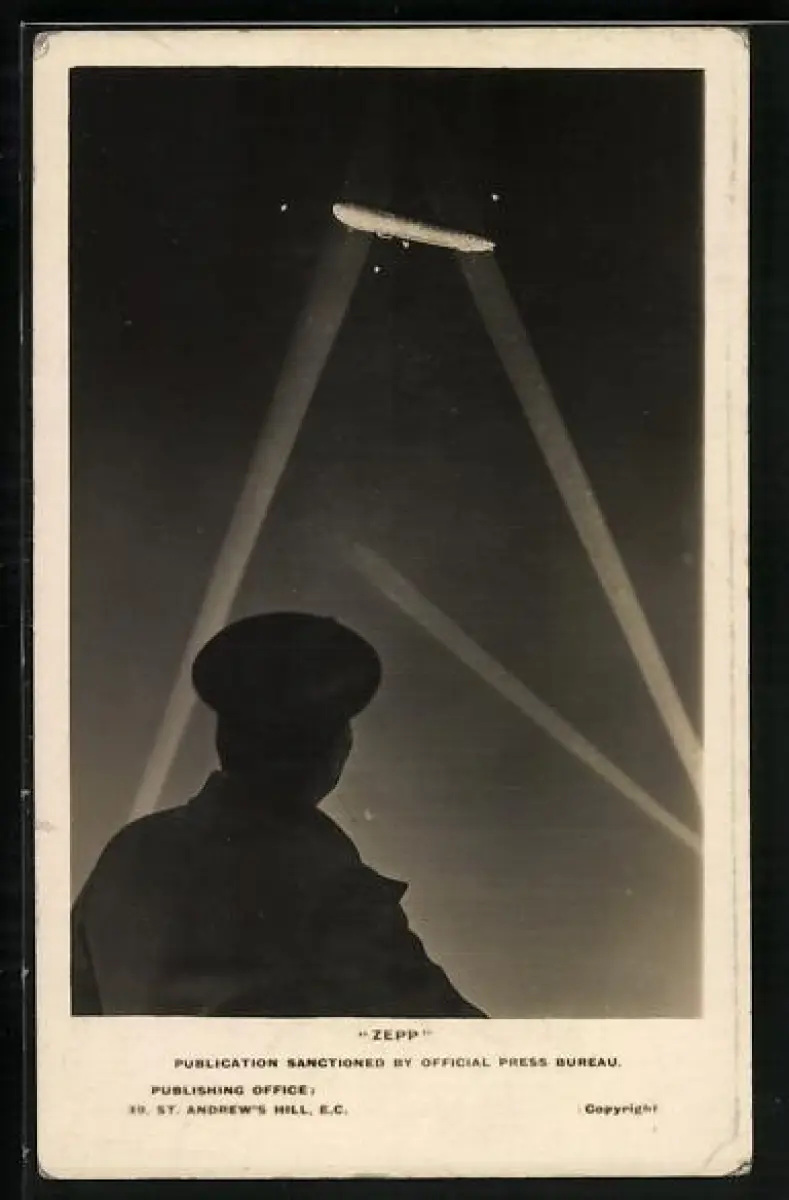 AK Zepp, Luftschiff im Licht von Scheinwerfern