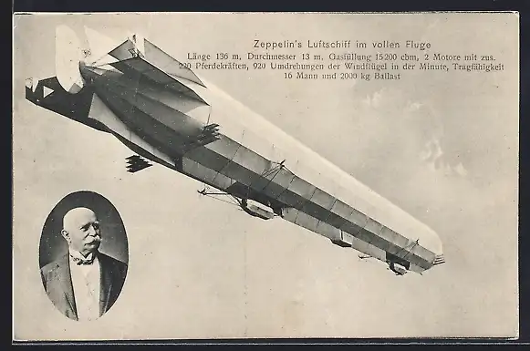 AK Zeppelin`s Luftschiff im vollen Fluge