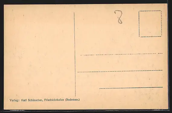 Personenbezogene Daten auf der Rückseite der Karte wurden durch blauen Textmarker unkenntlich gemacht. Die blauen Stellen sind auf die Vorderseite durchgeweicht und wirken sich negativ auf das Postkartenfoto aus