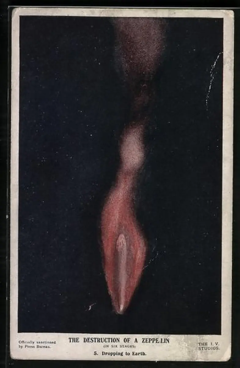 AK Zeppelin wird von britischer Flugabwehr abgeschossen