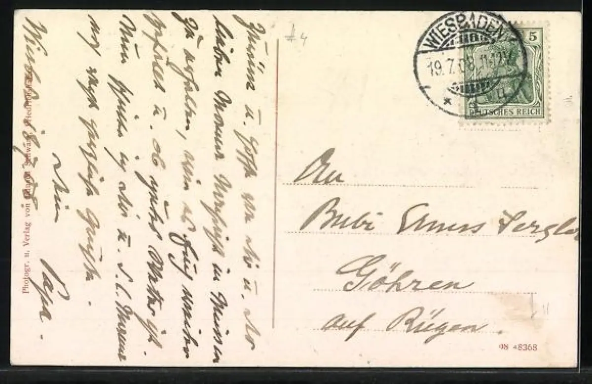 alte Ansichtskarte, gelaufen 1908, Stempelspur, guter Zustand