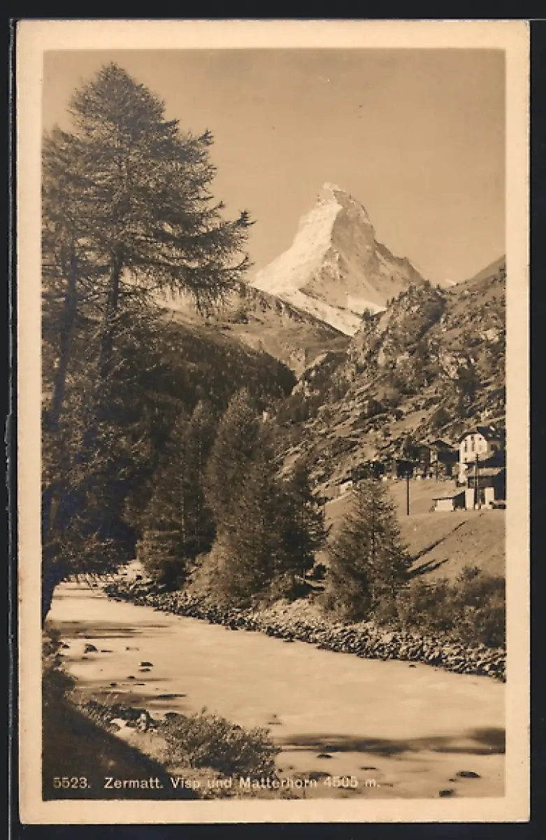 AK Zermatt, Strassenpartie mit Visp und Matterhorn