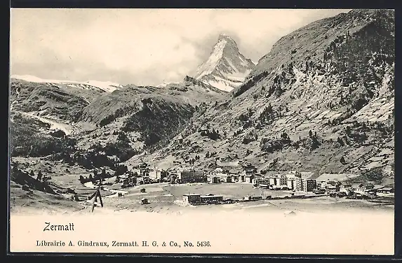 AK Zermatt, Teilansicht mit Bergen