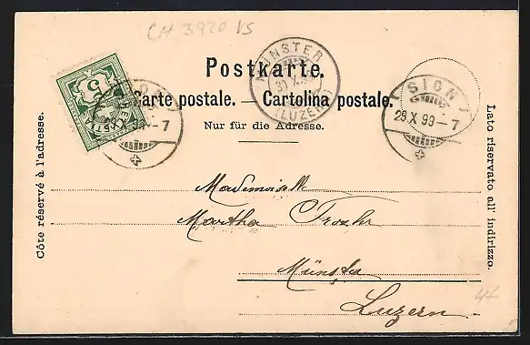 alte Ansichtskarte, gelaufen 1899, guter Zustand
