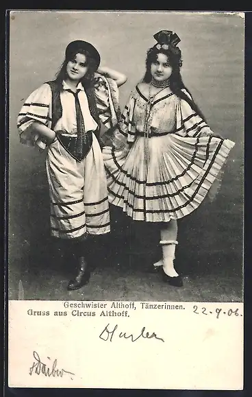 AK Zirkus Althoff, Tänzerinnen Geschwister Althoff in Kostümen