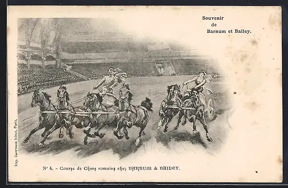 AK Zirkus Barnum & Bailey, Pferderennen in Streitwagen