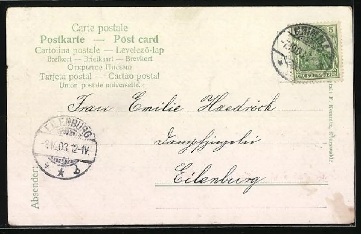 gelaufen 1903, Albumspur re. oben, guter Zustand