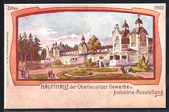 AK Zittau, Haupthalle der Oberlausitzer Gewerbe & Industrie-Ausstellung 1902