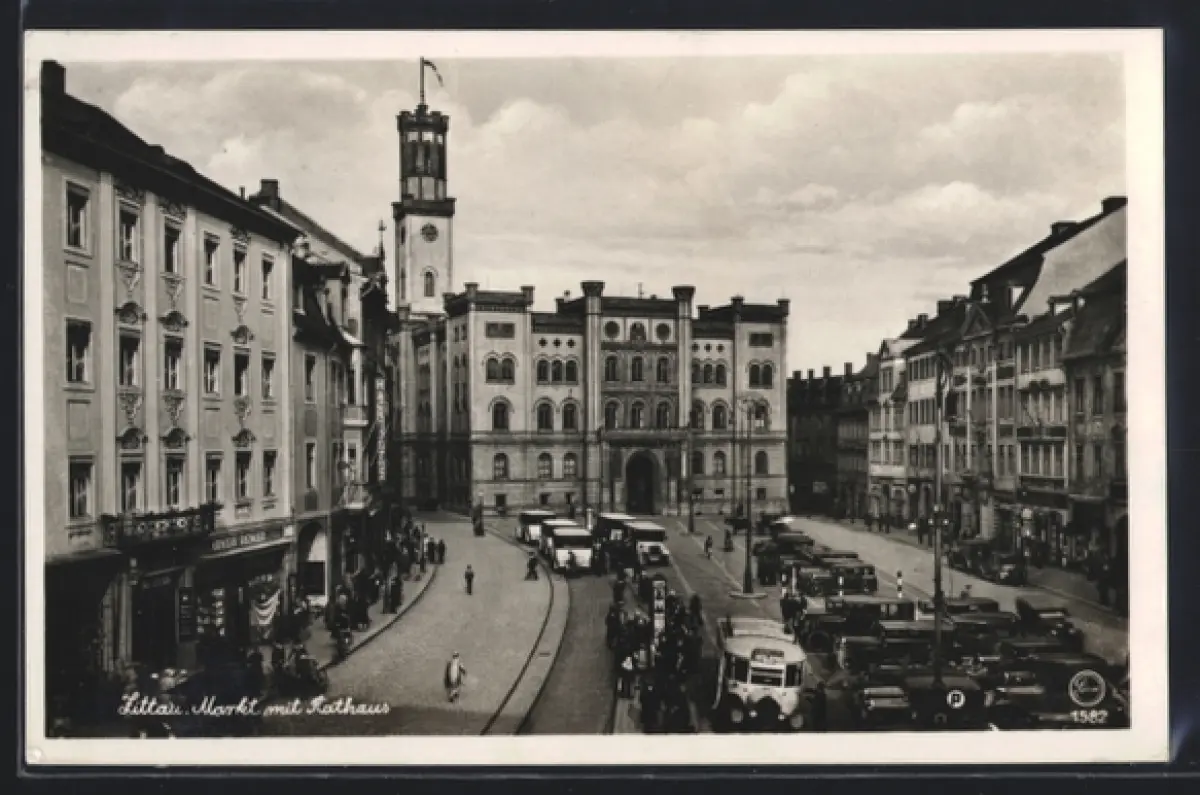 AK Zittau, Markt mit Rathaus