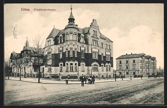 AK Zittau, Strasseneck Friedländerstrasse