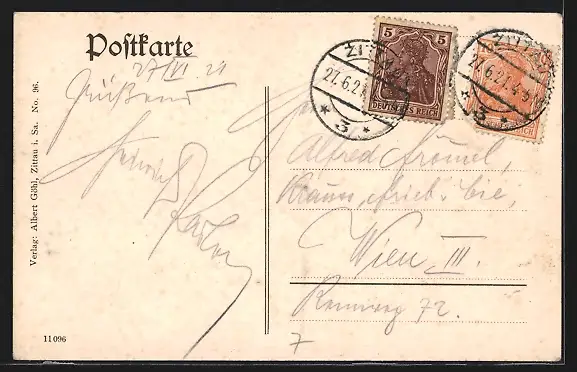 alte Ansichtskarte, gelaufen 1921, Stempelspur, guter Zustand