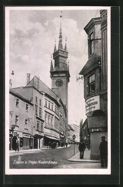 AK Znaim a. Thaya /Niederdonau, Strassenpartie mit Rathausturm