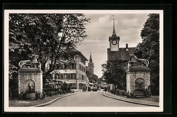 AK Zofingen, Teilansicht mit Löwen und Kirche