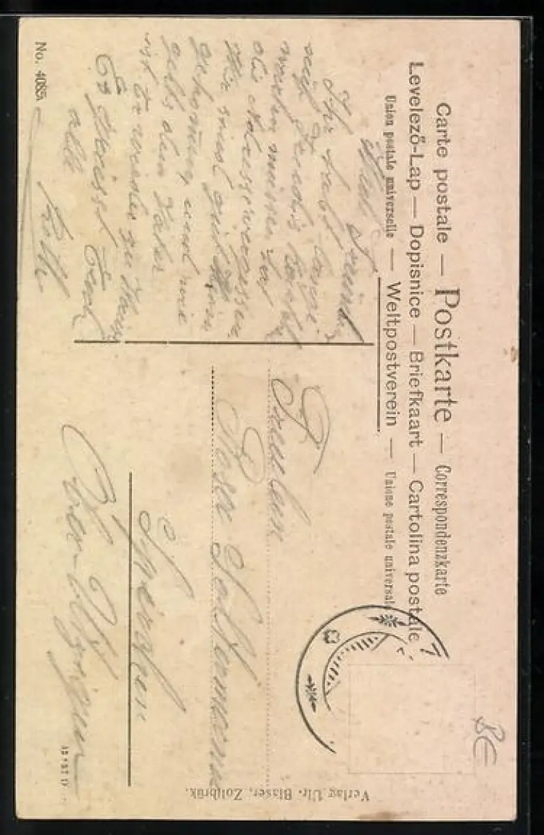alte Ansichtskarte, gelaufen, Briefmarke entfernt, guter Zustand