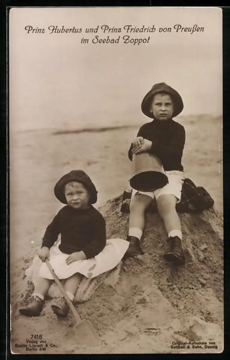 AK Zoppot, Prinz Hubertus und Prinz Friedrich Georg am Strand spielend